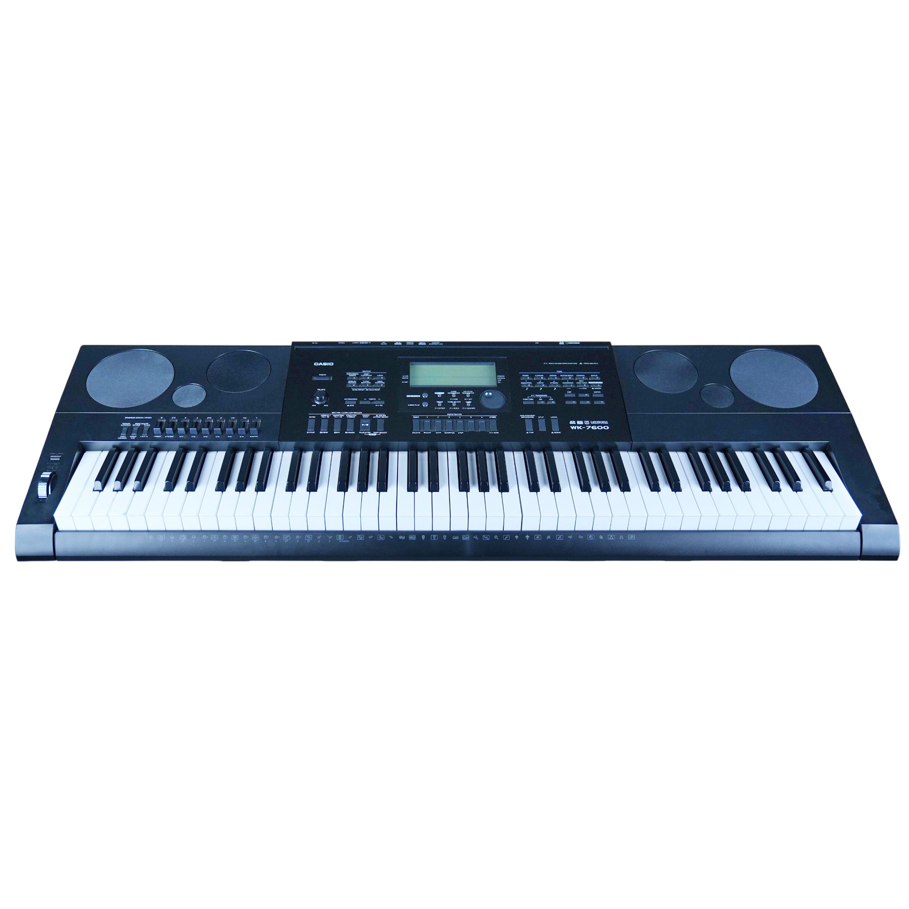 About this item 76-key Arranger Keyboard with Built-in Pattern and Song Sequencers 32-channel Mixer DSP Effects Tone Edit Arpeggiat Product information Size medium Age Range (Description) Adult Item Weight 21 Pounds Model Name WK 7600 Style WK7600 Stand-Alone Keyboard Connector Type USB Type A Connectivity Technology USB Power Source Usb Instrument Electronic keyboard Manufacturer Casio Inc. UPC 079767314149 Item Weight 21 pounds Product Dimensions 50 x 8 x 18 inches ASIN B00GXNS5PU Item model number WK-7600 Batteries 6 AA batteries required.